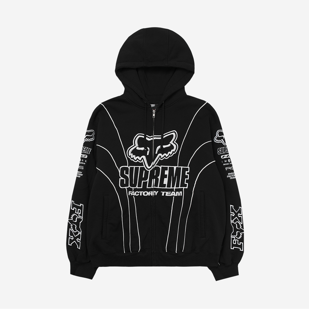슈프림 x 폭스 레이싱 집업 후드 스웨트셔츠 블랙 - 25FW
