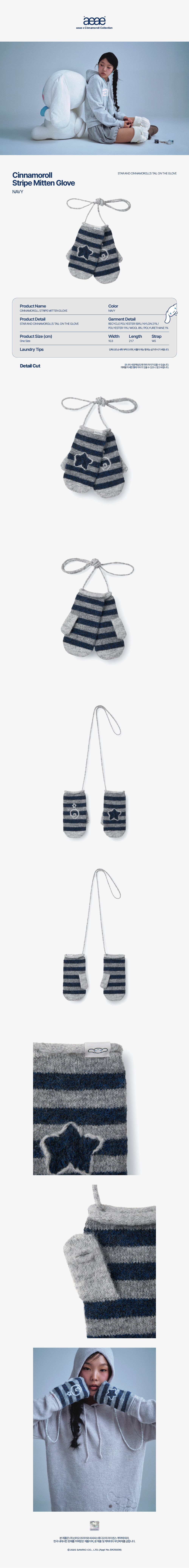 에이이에이이 시나모롤 스트라이프 미튼 글러브 네이비
