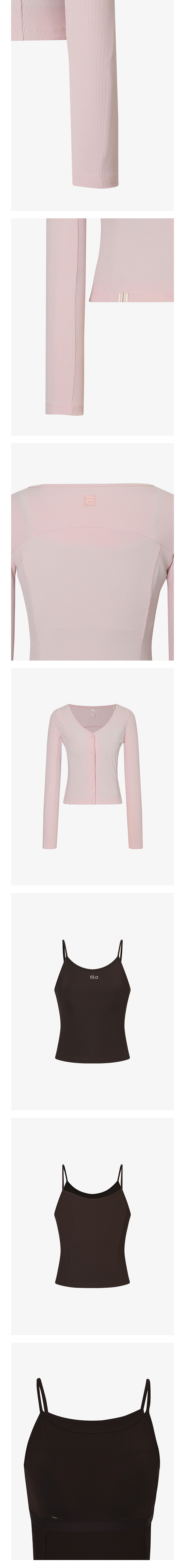 커버업 가디건과 슬리브리스 셋업상품으로 활용도가 높은 아이템입니다. 슬리브리스는 단품으로도 착용하고 티셔츠위에 레이어드할 수 있는 뷔스티에로 코디할 수 있습니다. 신축성 있고 통기성이 좋은 골지 원단으로 제작되어 일상적인 외출, 운동, 또는 휴식 시간에 편안한 착용감을 제공합니다. 동일 소재의 스커트 레이어드 부츠컷 레깅스(FS253IP02F001)와 셋업으로 착장할 수 있습니다.