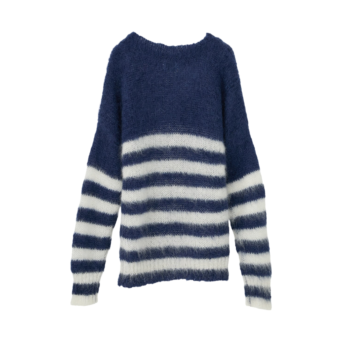 (W) 프라그먼트 x 크라네 보더 모헤어 니트 탑 네이비