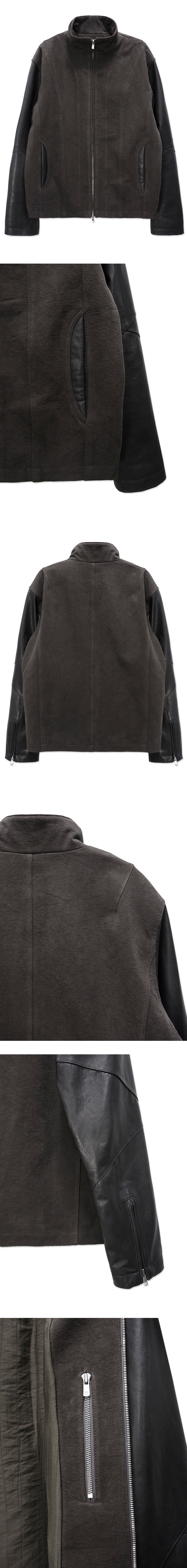 EXCELLA® 투웨이 지퍼 몸판 원단 바이오 워싱 기법 소매 양가죽 원단 전면 2개의 포켓 소매 지퍼 디자인 내부 1개의 지퍼 포켓