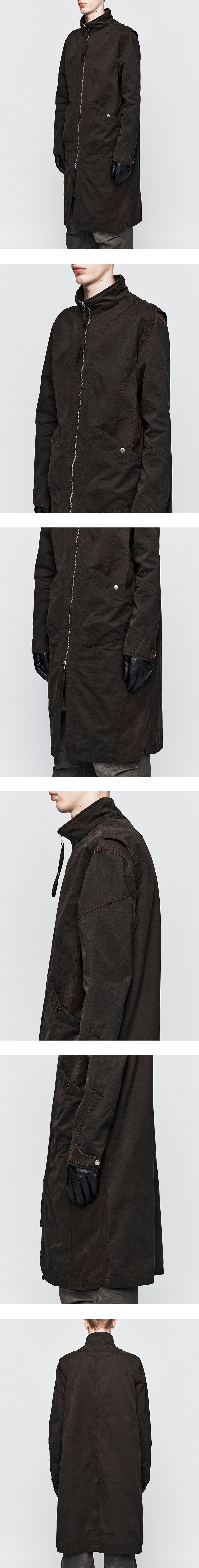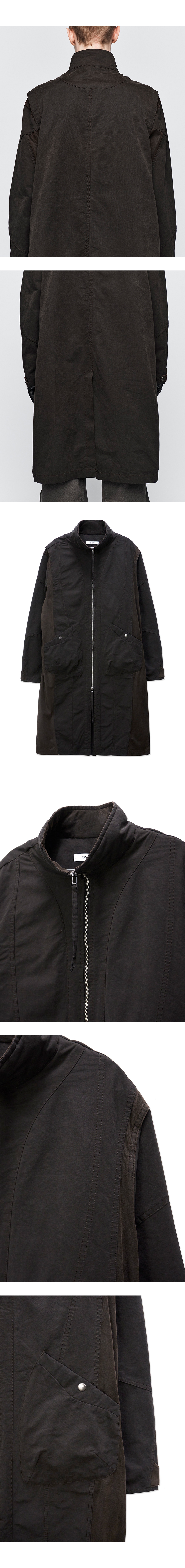 YKK 투웨이 지퍼 바이오 워싱 기법 측면 배색 패널 전면 2개의 스냅 포켓 소매 스냅 어드저스트
