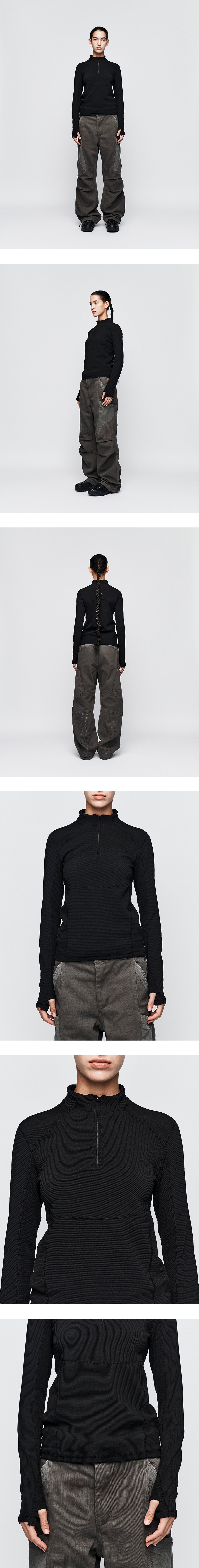 전면 하프 지퍼 디테일 소매 워머 디자인