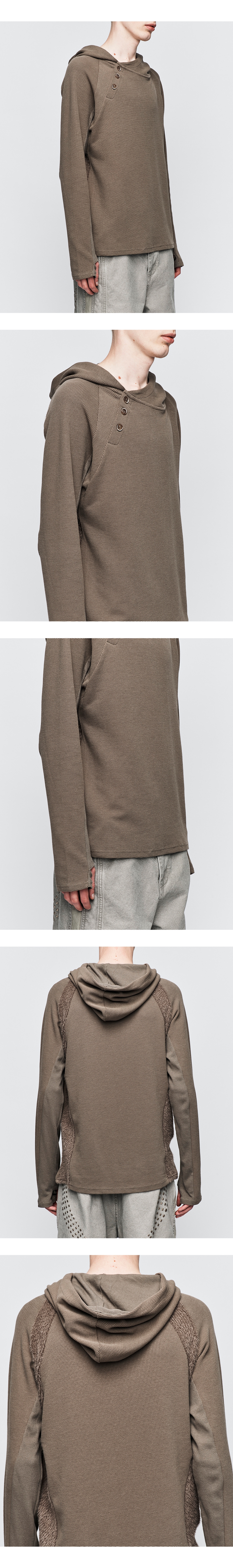 전면 버튼 디자인 소매/후면/후드 배색 패널 소매 워머 디자인