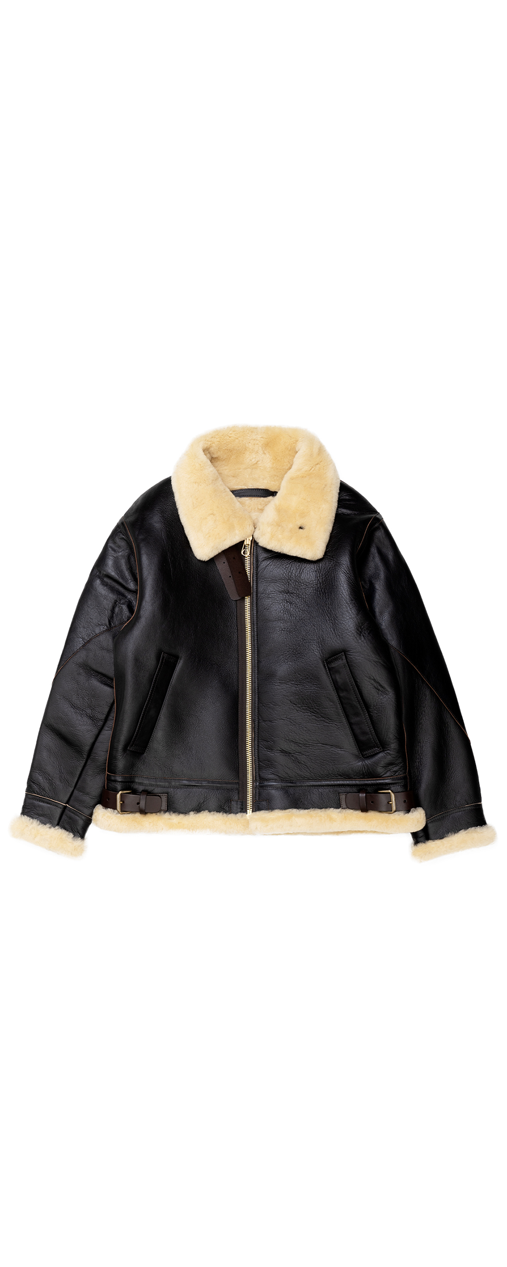Houston Japan 8233 Mouton B-3 2PK - Brown Core 밀리터리 B-3 자켓 중 2 포켓 사양을 복각한 제품입니다. B-3 자켓은 혹한의 하늘을 나는 폭격기 조종사의 생명을 지키기 위해 만들어진 플라이트 자켓으로 최근에는 투박한 디자인과 압도적인 방한성으로 겨울 밀리터리 패션에 빠지지 않는 아이템입니다. 컬러는 컬러는 경년 변화를 느낄 수 있는 브라운 코어 트림(차심)으로 전개되었습니다. * Shell : Sheepskin (Mouton) 100% * Other Cloth : Horsehide 100% * 빛에 의한 제품의 색감 차이가 존재 할 수 있습니다. * Made in China