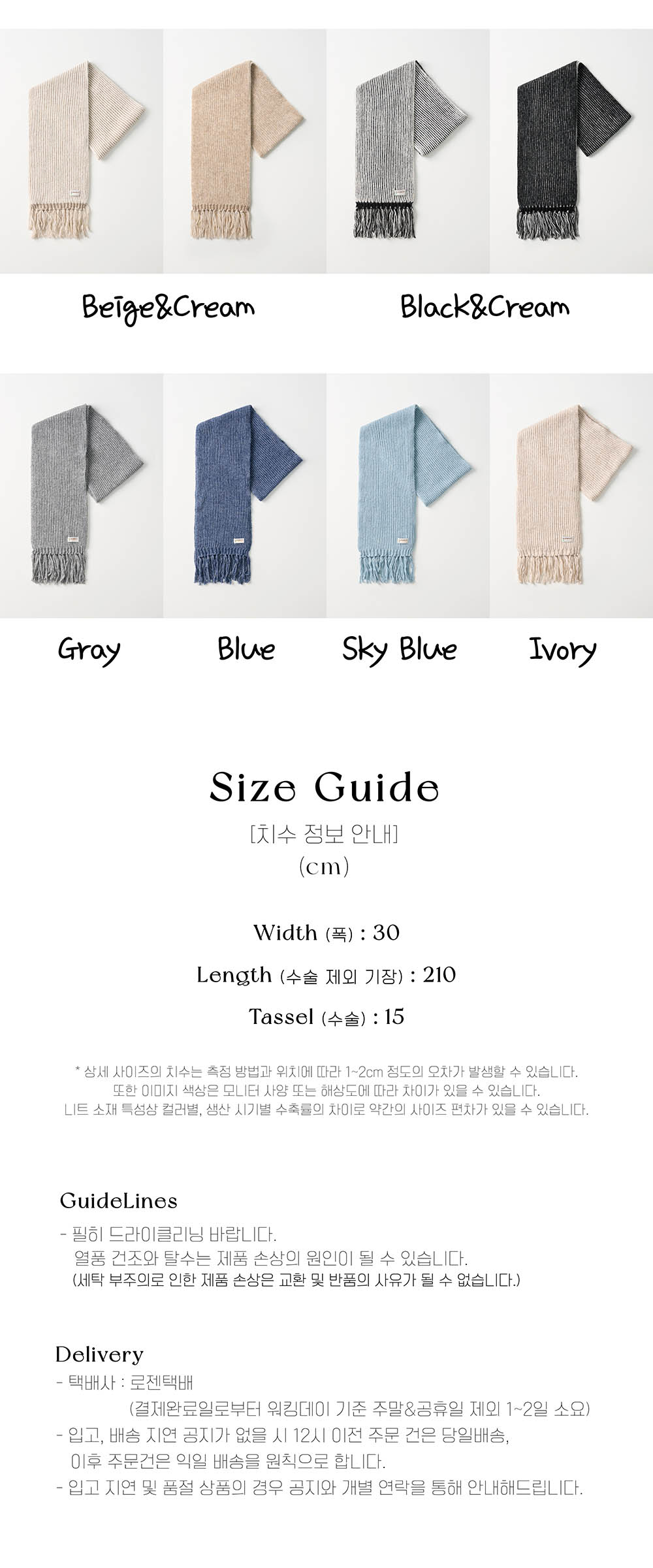 올인컴플리트 레인 태슬 니트 머플러 아이보리