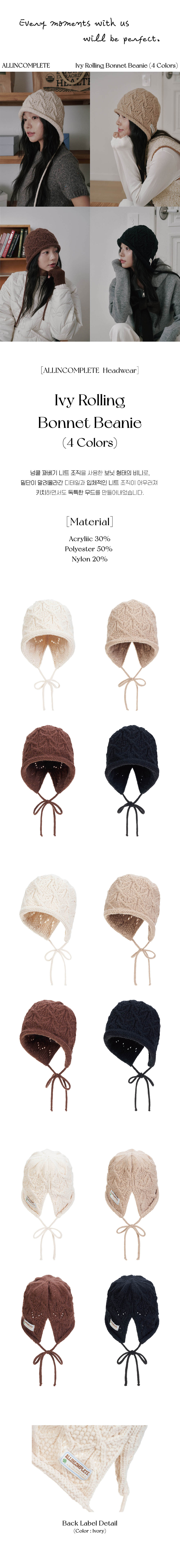올인컴플리트 아이비 롤링 보닛 비니 브라운