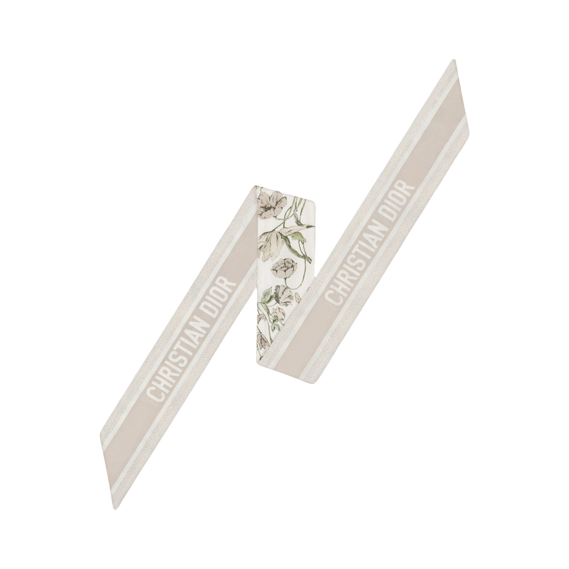 (W) Dior Millefiori Mitzah Scarf And Light Beige Silk Twill White Light Beige