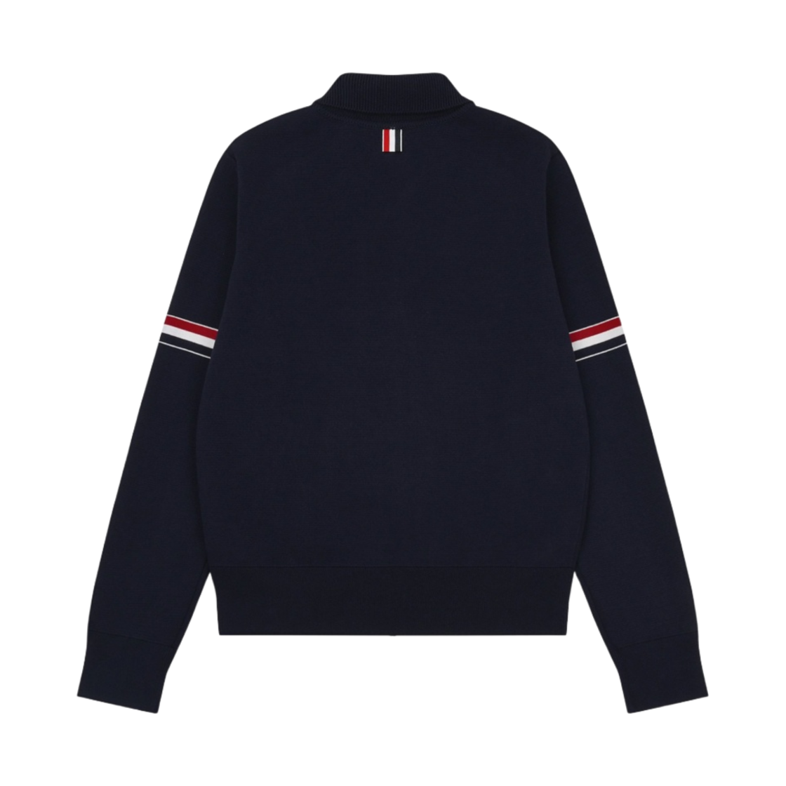 Thom Browne Cotton Milano Stitch RWB Armband Polo Bomber Jacket Navy