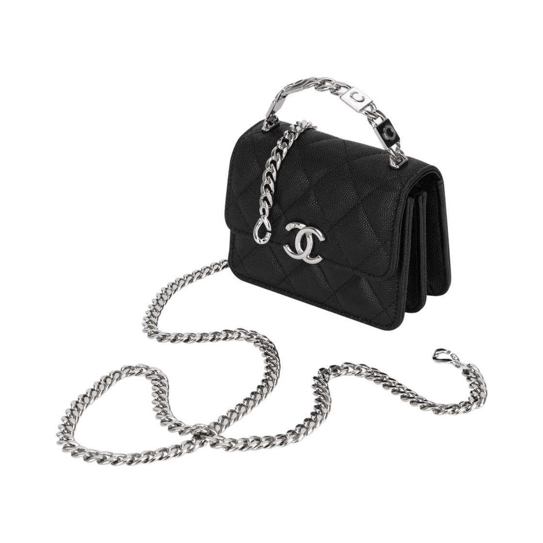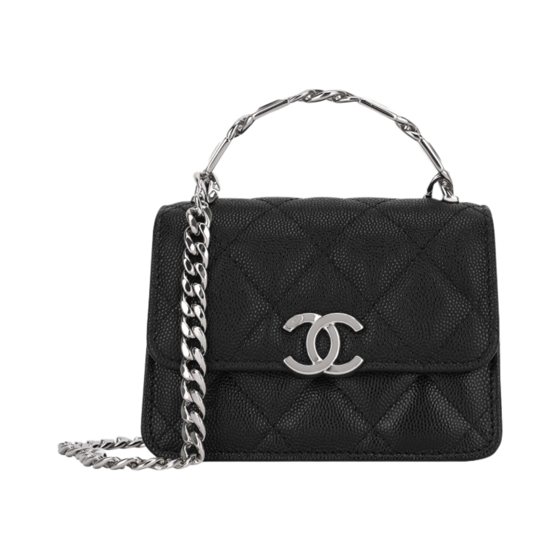 샤넬 체인 달린 미니백 샤이니 그레인드 카프스킨 & 실버 메탈 블랙