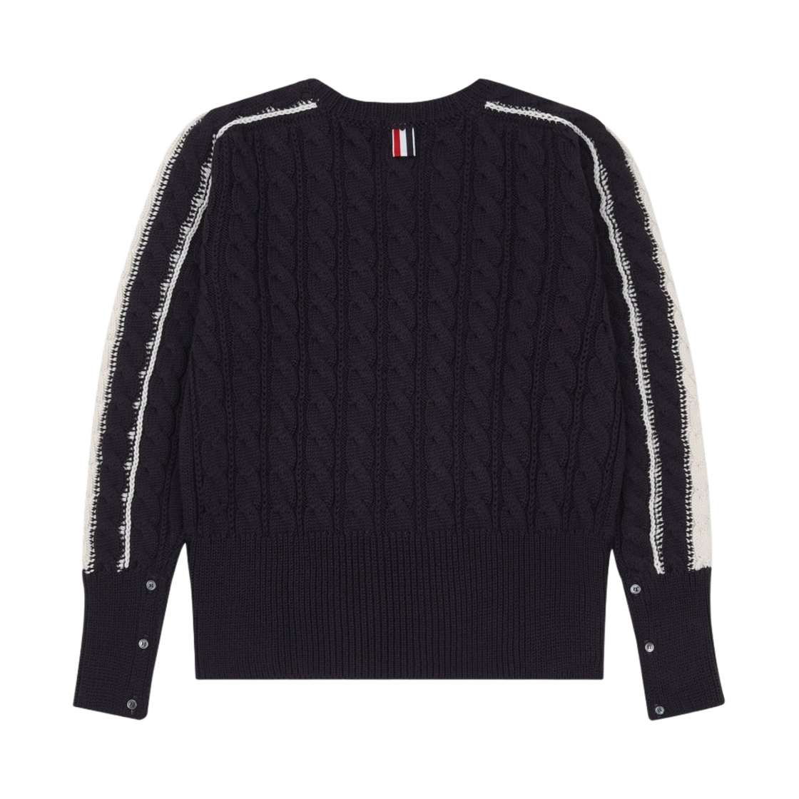 Thom Browne Side RWB Cable Stitch Merino Wool Stripe Pullover Knit Navy