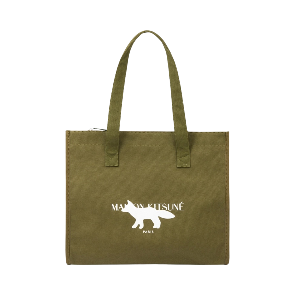Maison Kitsune Profil Fox Stamp E/W Tote Bag Dark Khaki