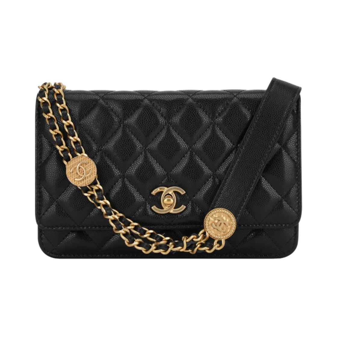 Chanel Wallet On Chain Grained Shiny Calfskin & Gold Black