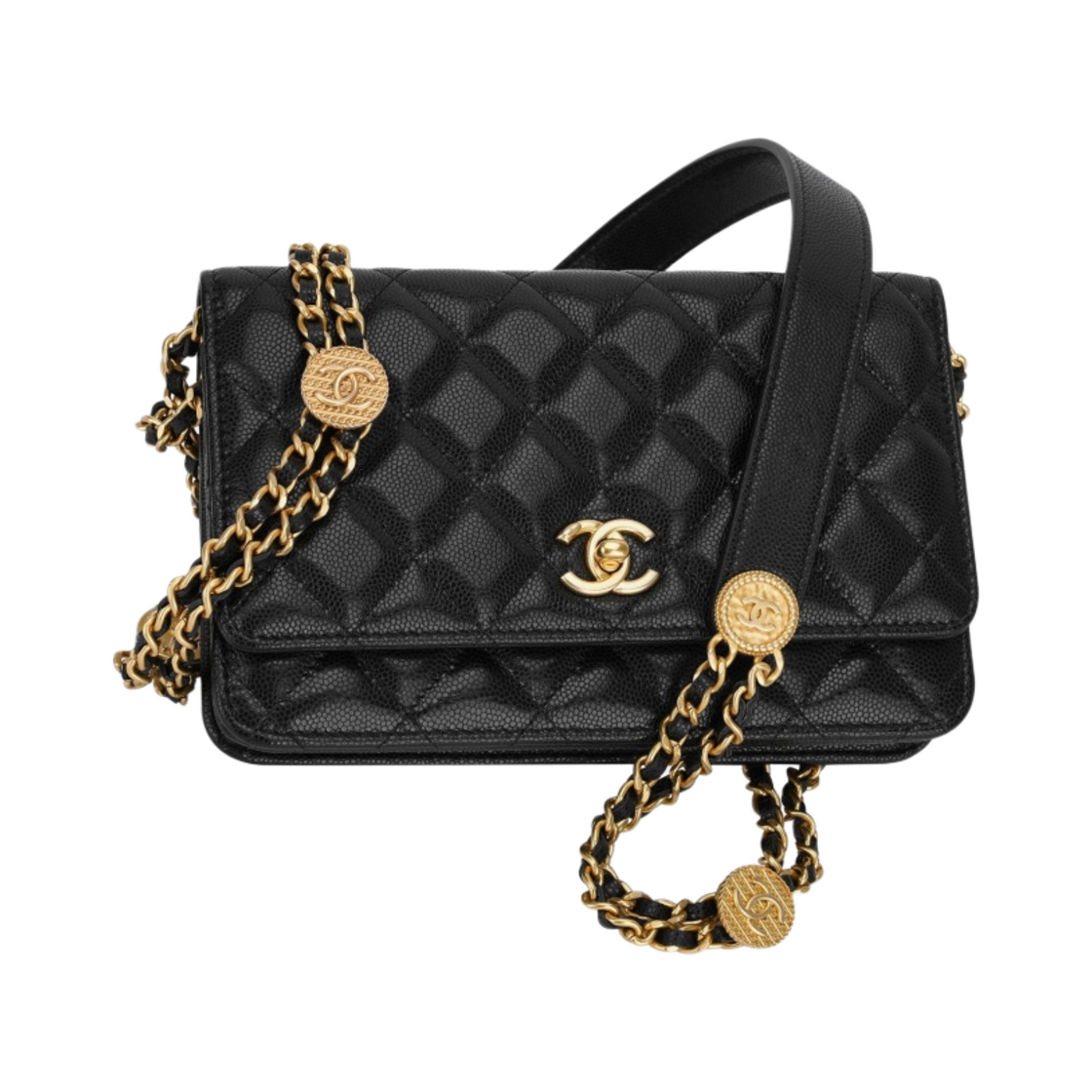 샤넬 체인 지갑 그레인드 샤이니 카프스킨 & 골드 메탈 블랙