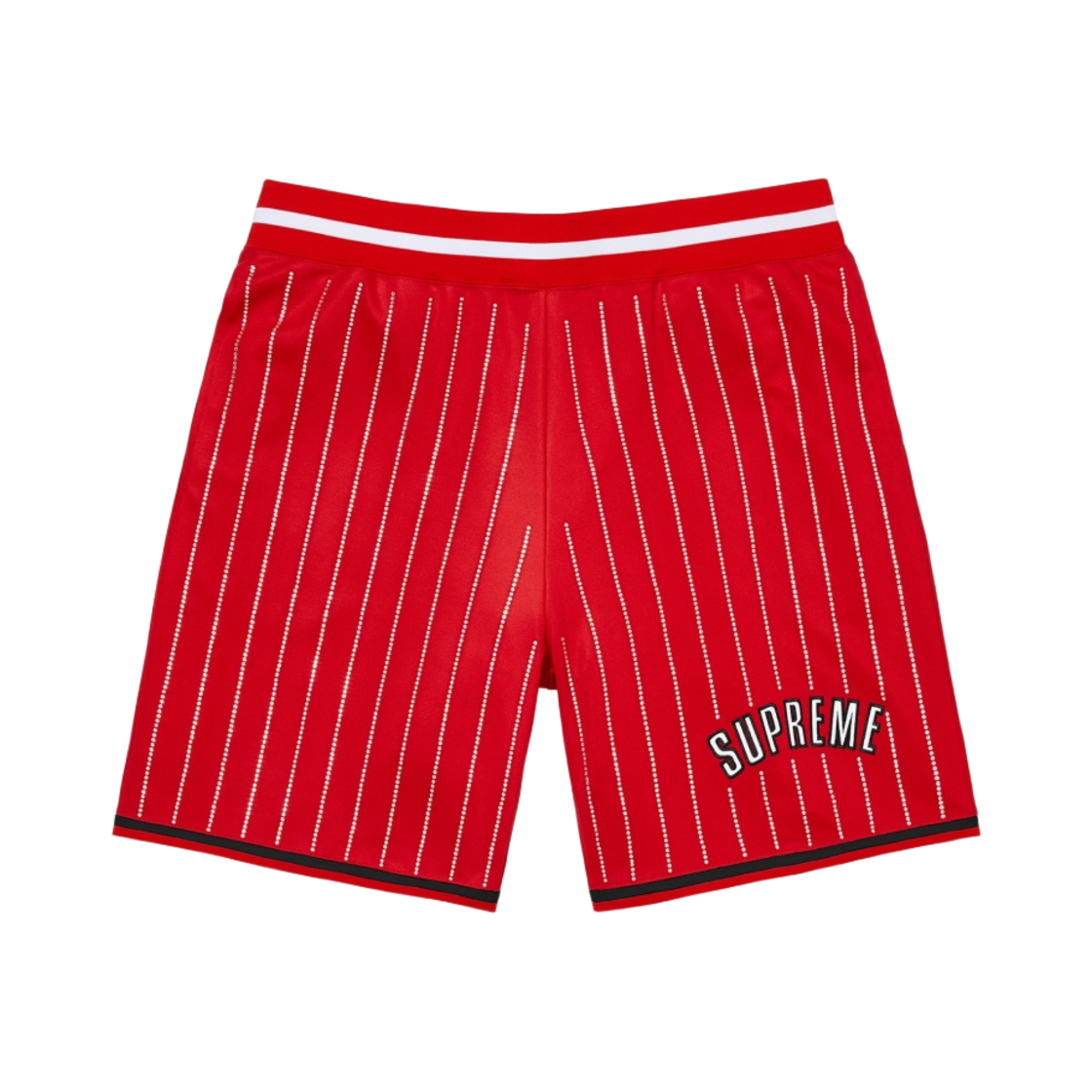 슈프림 라인스톤 스트라이프 베스킷볼 쇼츠 레드 - 22SS