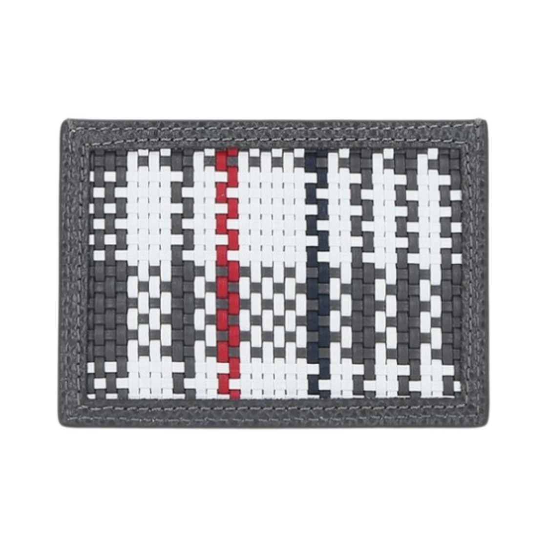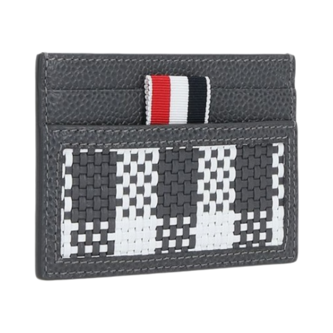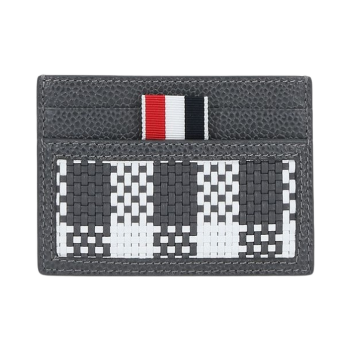Thom Browne Pebble Grain Leather Check Weaving Single Card Holder Dark Grey