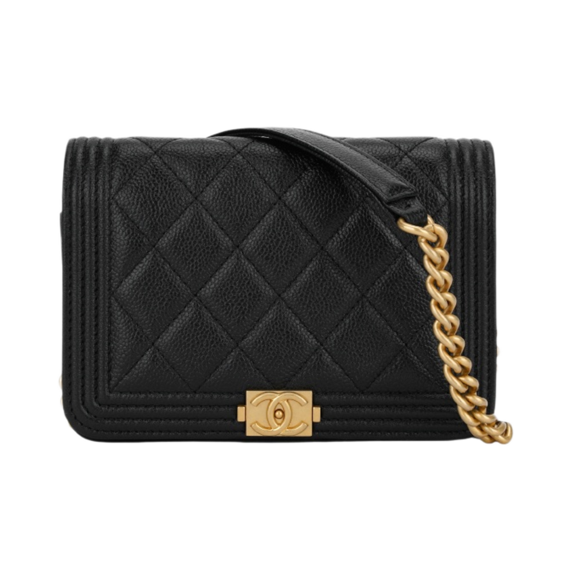 샤넬 보이 샤넬 체인 미니백 그레인드 카프스킨 & 골드 메탈 블랙