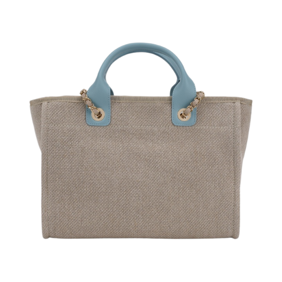 Chanel Small Shopping Bag Mixed Fiber Calfskin & Gold Beige Blue