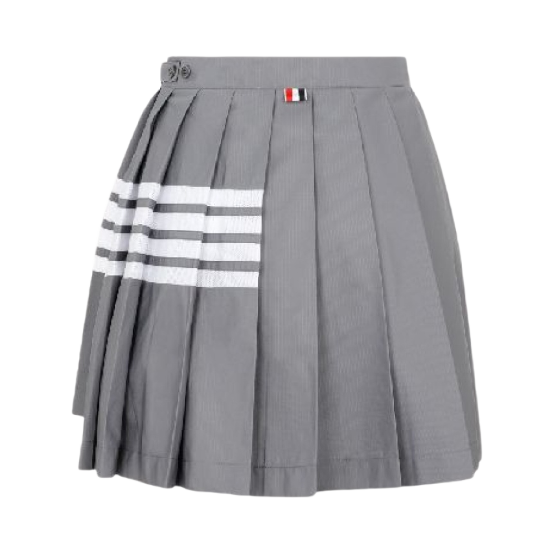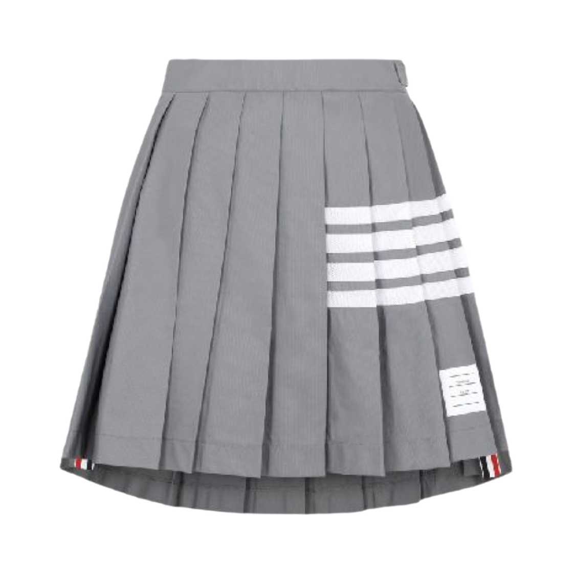 (W) Thom Browne Ripstop Mesh 4-Bar Dropped Back Pleated Mini Skirt Medium Grey