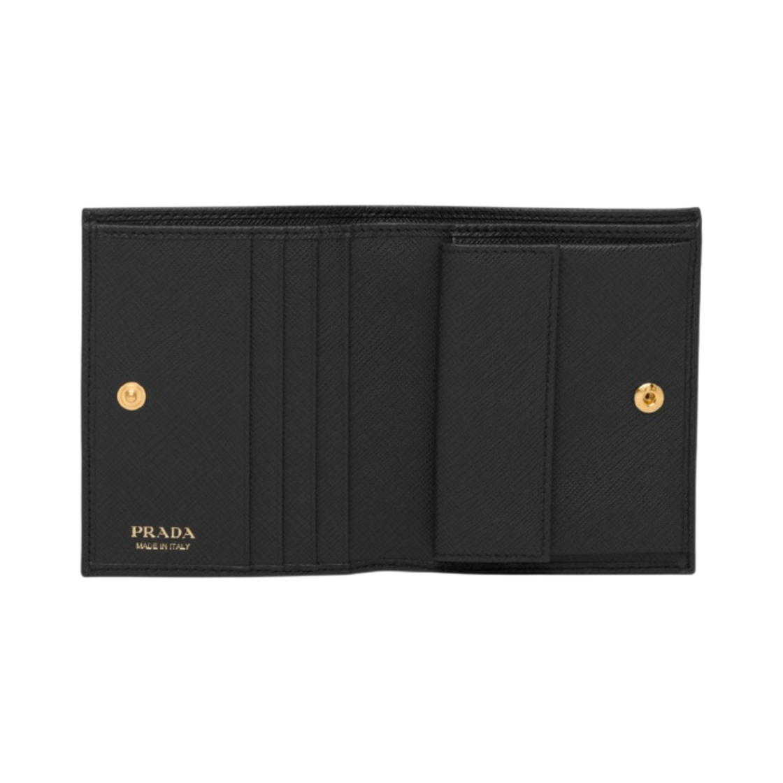 Prada Small Saffiano Leather Triangle Logo Wallet Black Gold