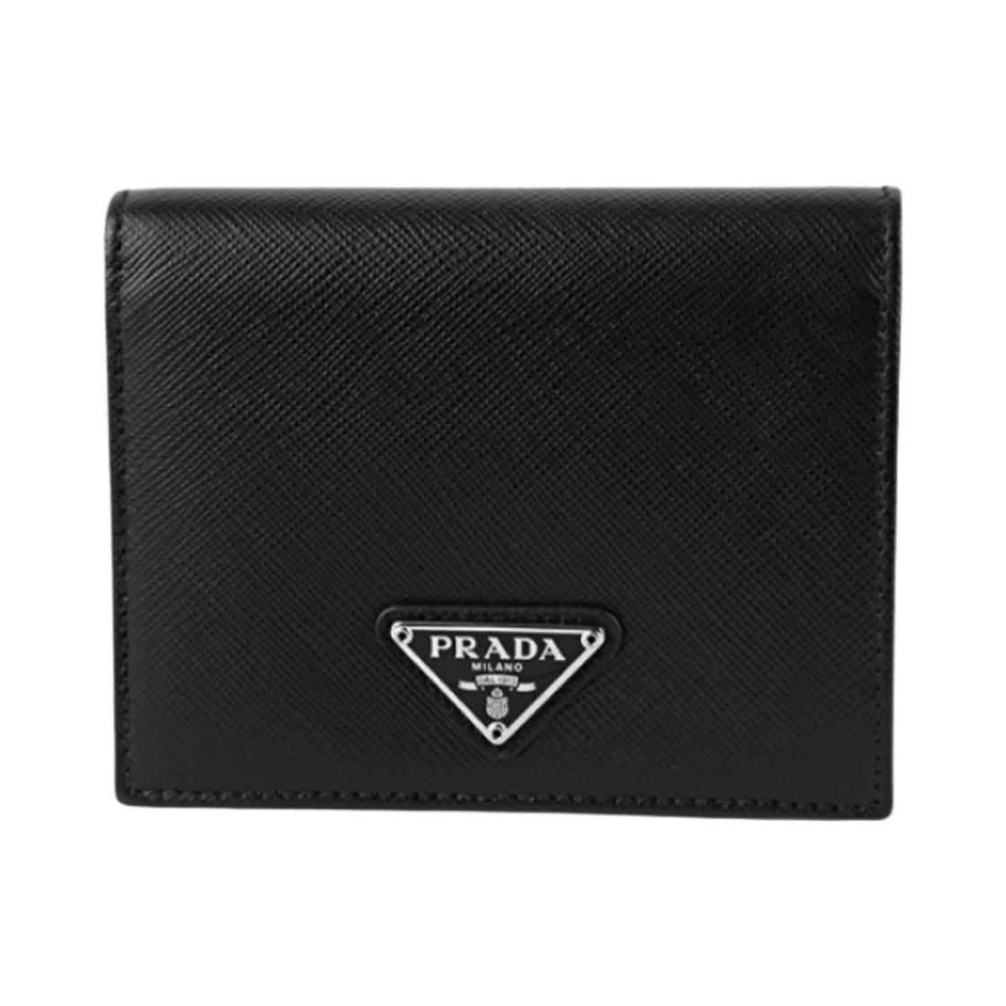 Prada Small Saffiano Leather Triangle Logo Wallet Black Silver