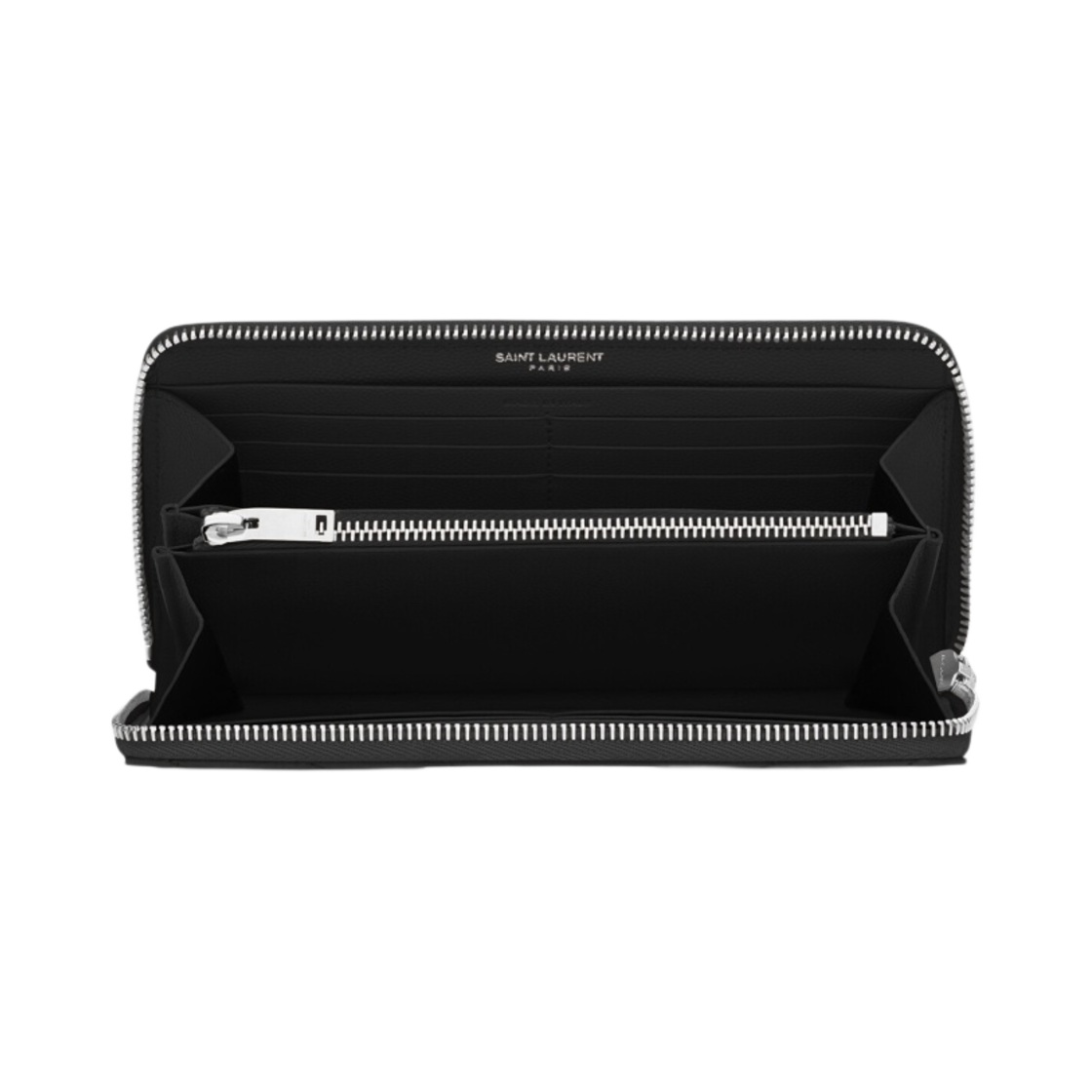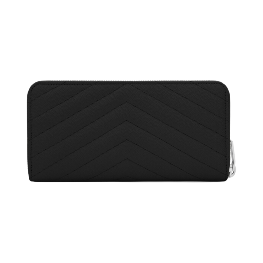 Saint Laurent Cassandre Matelasse Zip Around Wallet in Grain De Poudre Embossed Leather Black Silver