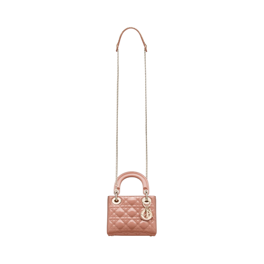 Dior Mini Lady Bag Patent Cannage Calfskin Rose Des Vents