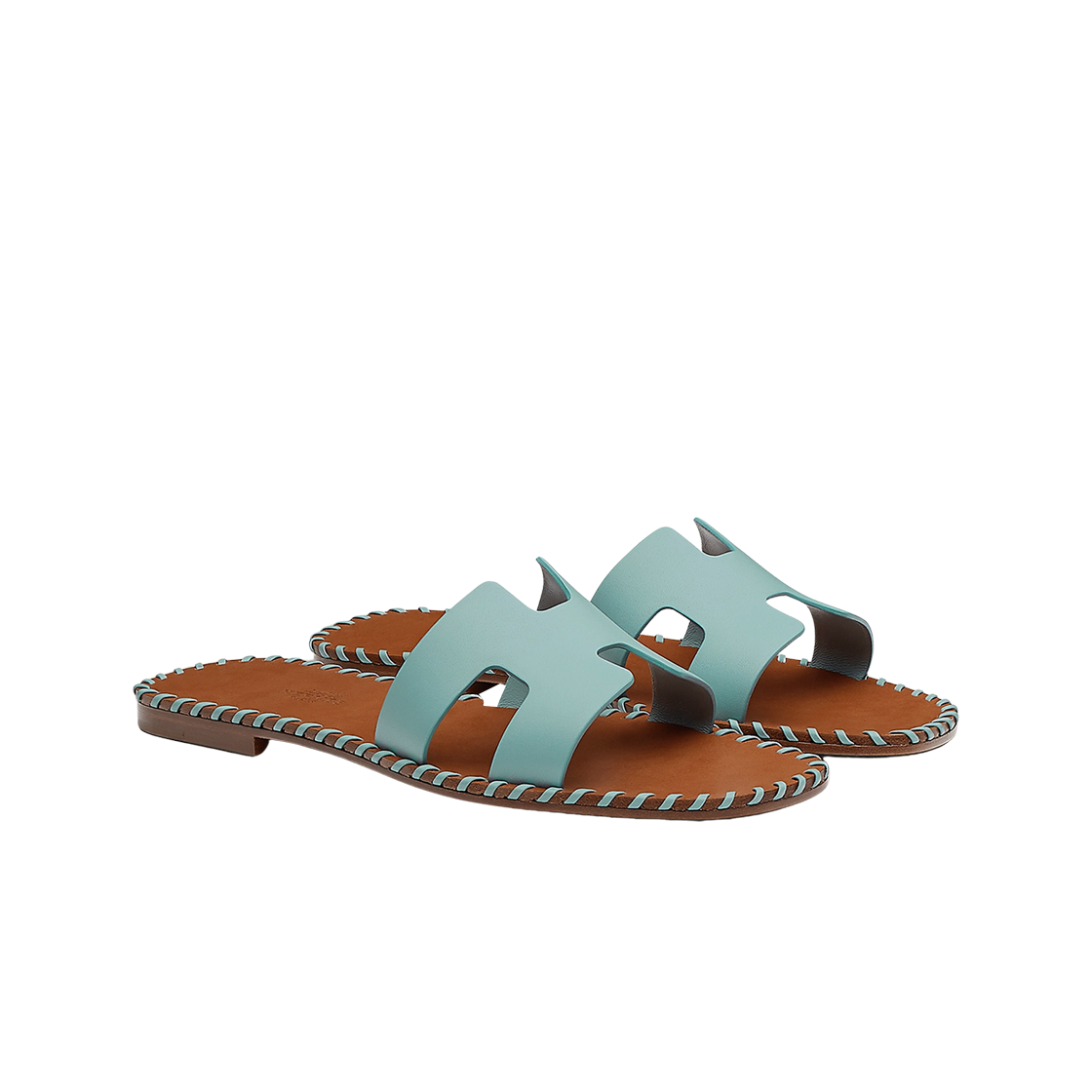 (W) Hermes Oran Sandal Braided Calfskin & Vert Deau