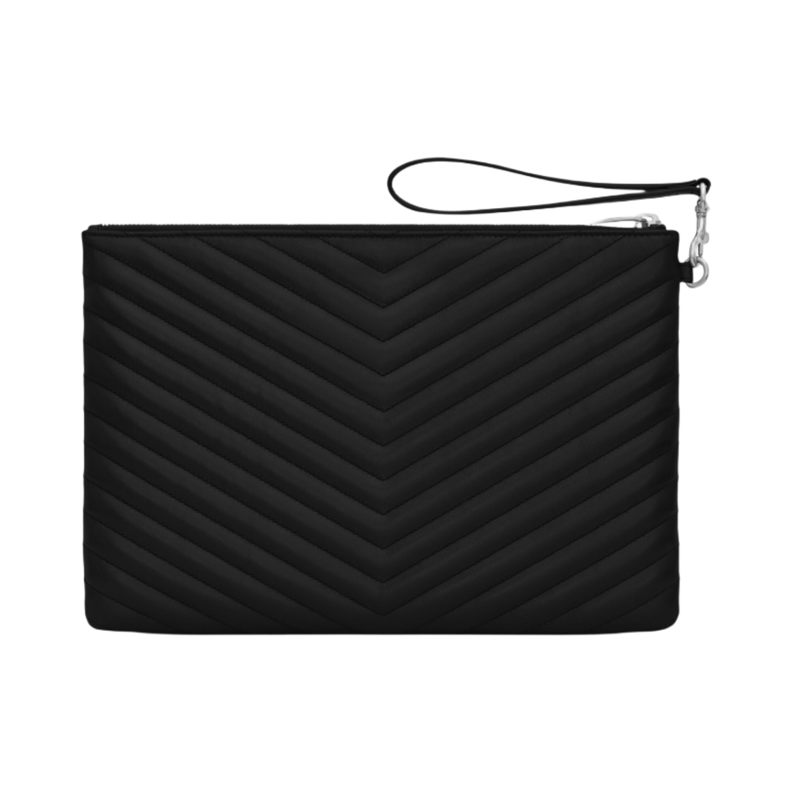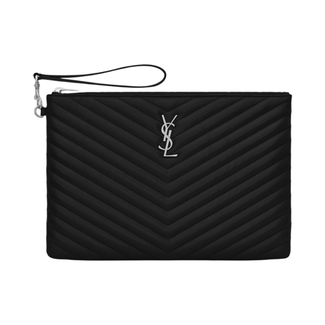 Saint Laurent Silver Monogram Cassandre Matelasse Tablet Pouch in Quilted Leather Black