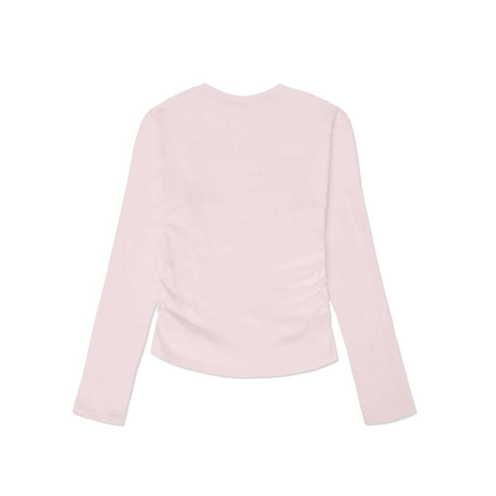 이스케이프프롬 슬로건 레터링 프린트 슬림핏 셔링 롱슬리브 핑크