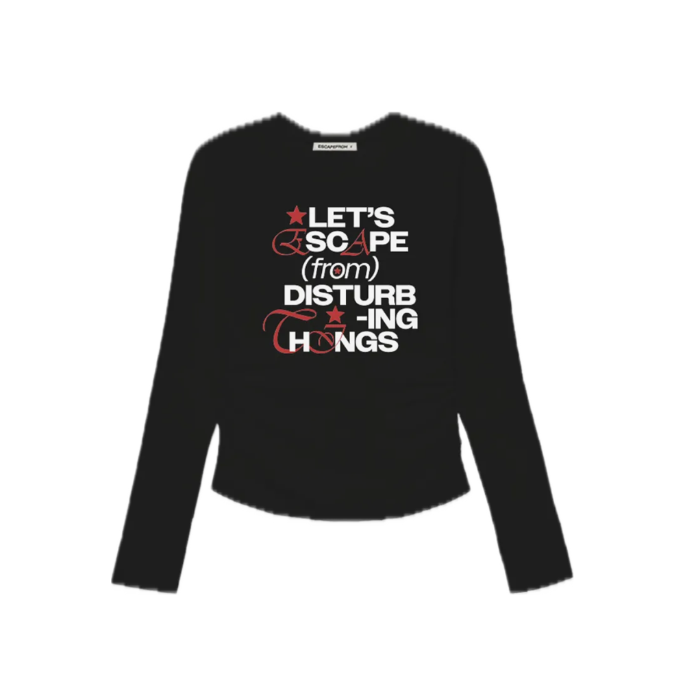 이스케이프프롬 슬로건 레터링 프린트 슬림핏 셔링 롱슬리브 블랙