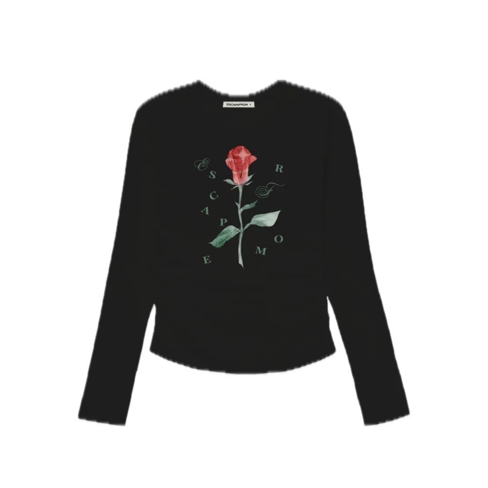 이스케이프프롬 온리원 로즈 프린트 슬림핏 셔링 롱슬리브 블랙