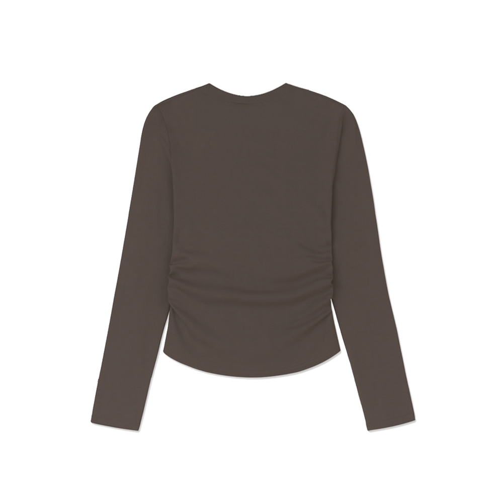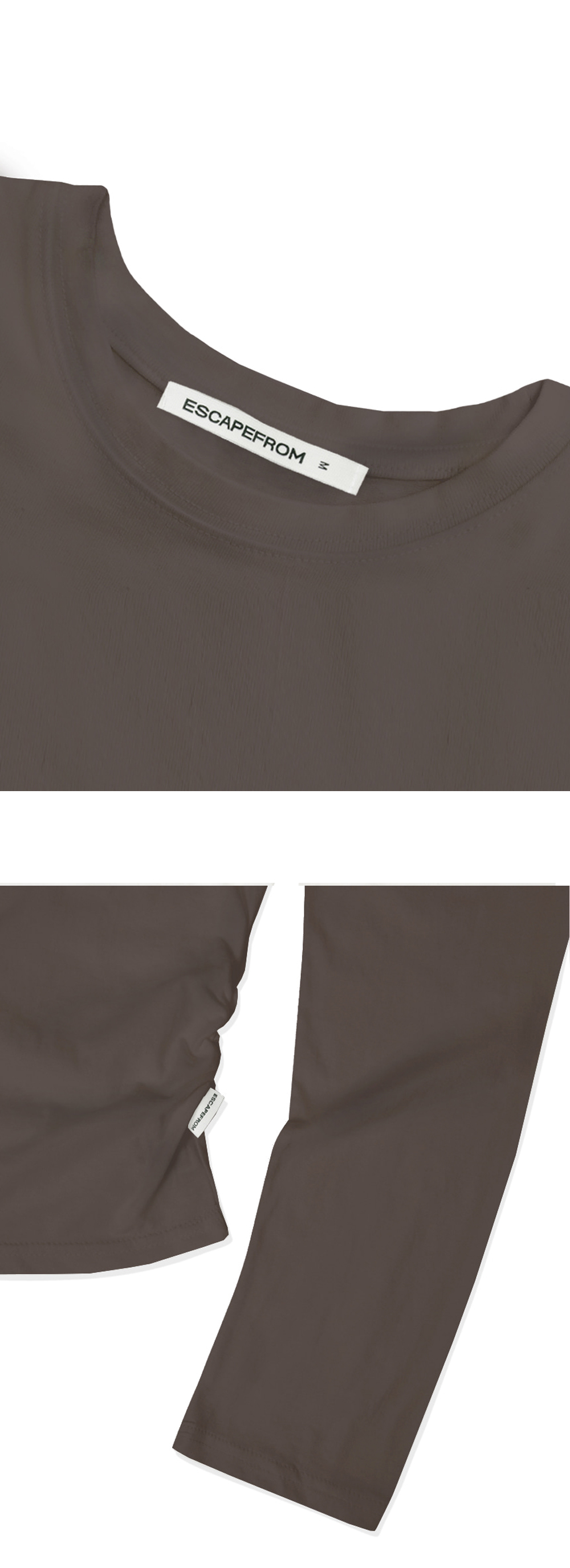 이스케이프프롬 냅 엔쑤지애스트 프린트 슬림핏 셔링 롱슬리브 브라운