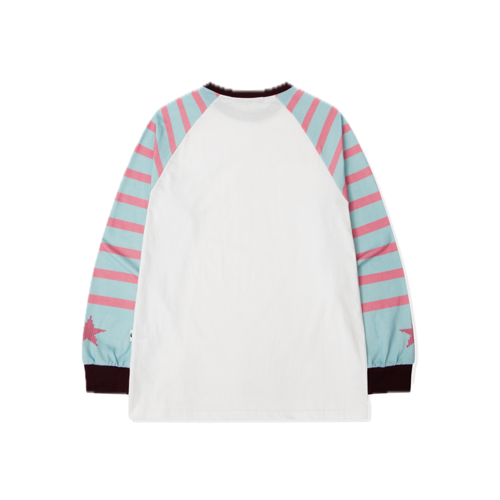 Escapefrom Knit Star Stripe Color Block Oversized Long Sleeve Pink