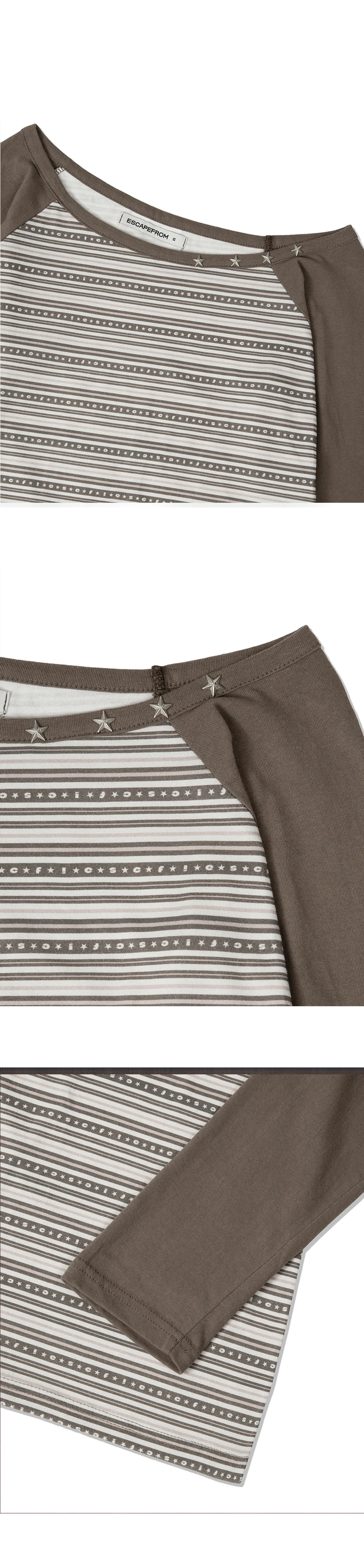 이스케이프프롬 모카 스타 로고 스트라이프 풀프린트 별 리벳 포인트 원숄더 롱슬리브 브라운