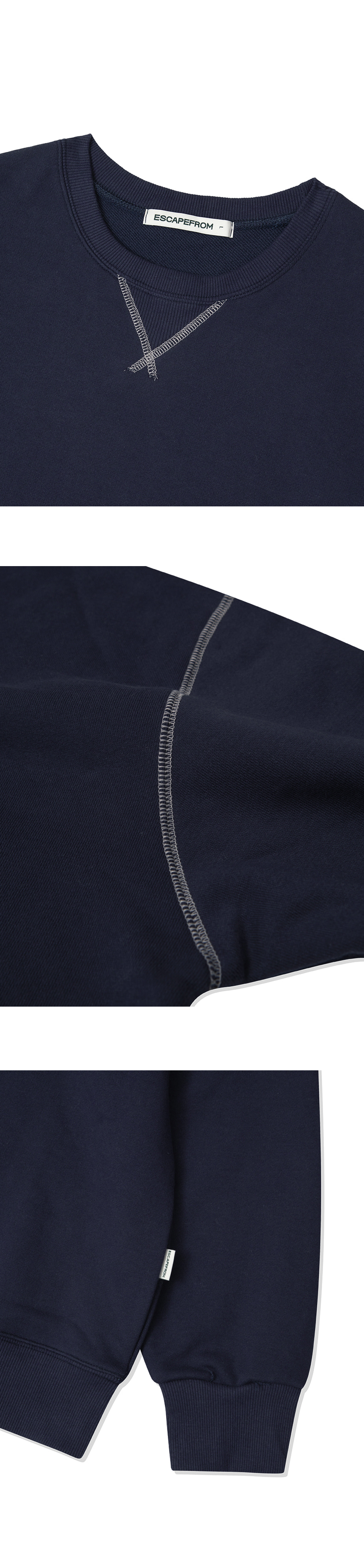 이스케이프프롬 피치피치 프린트 라인 포인트 맨투맨 네이비