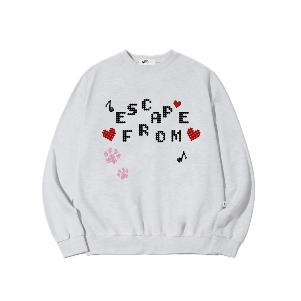 이스케이프프롬 하트비트 써클 로고 프린트 맨투맨 화이트멜란지