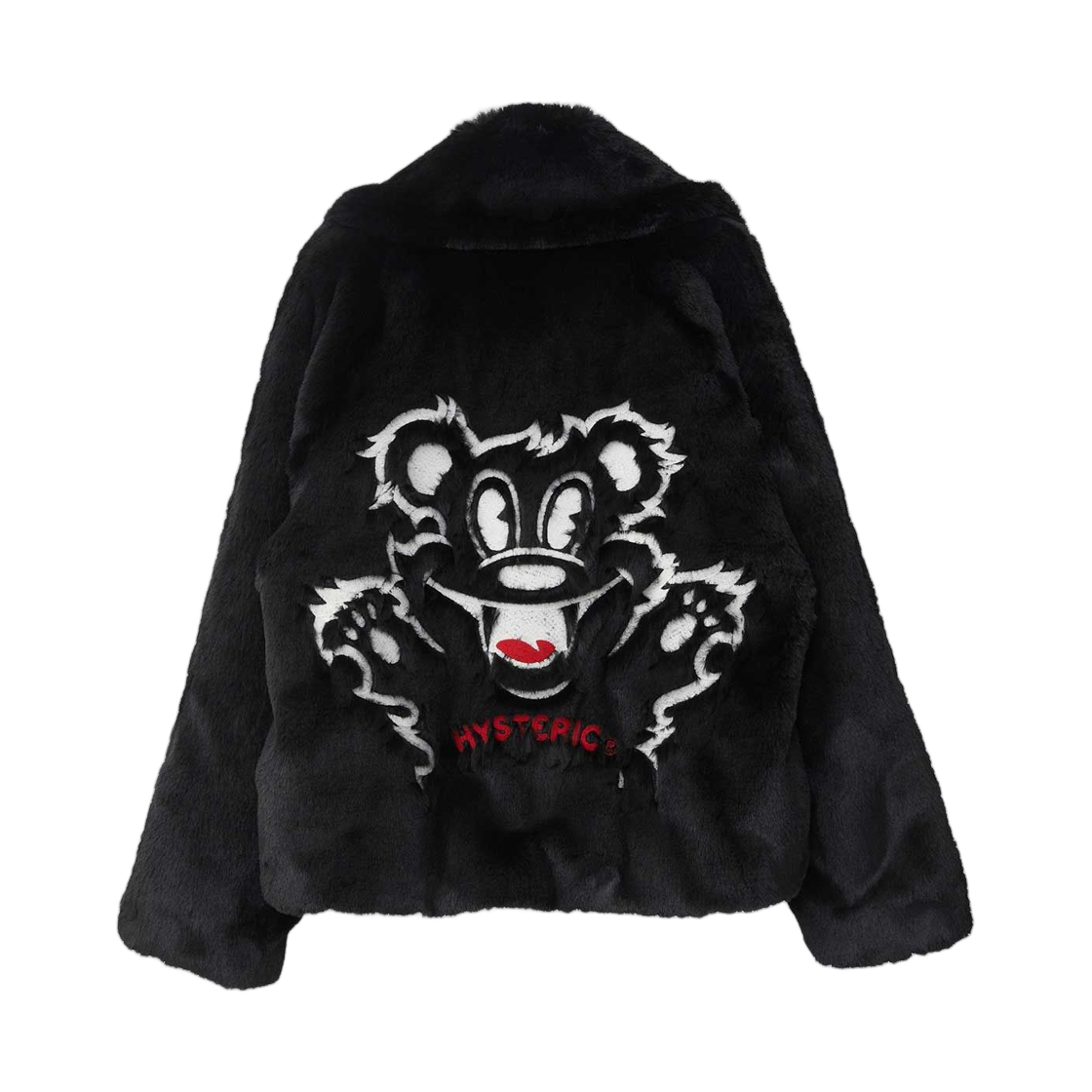 (W) Hysteric Glamour Fire Bear Embroidered Faux Fur Blouson Black