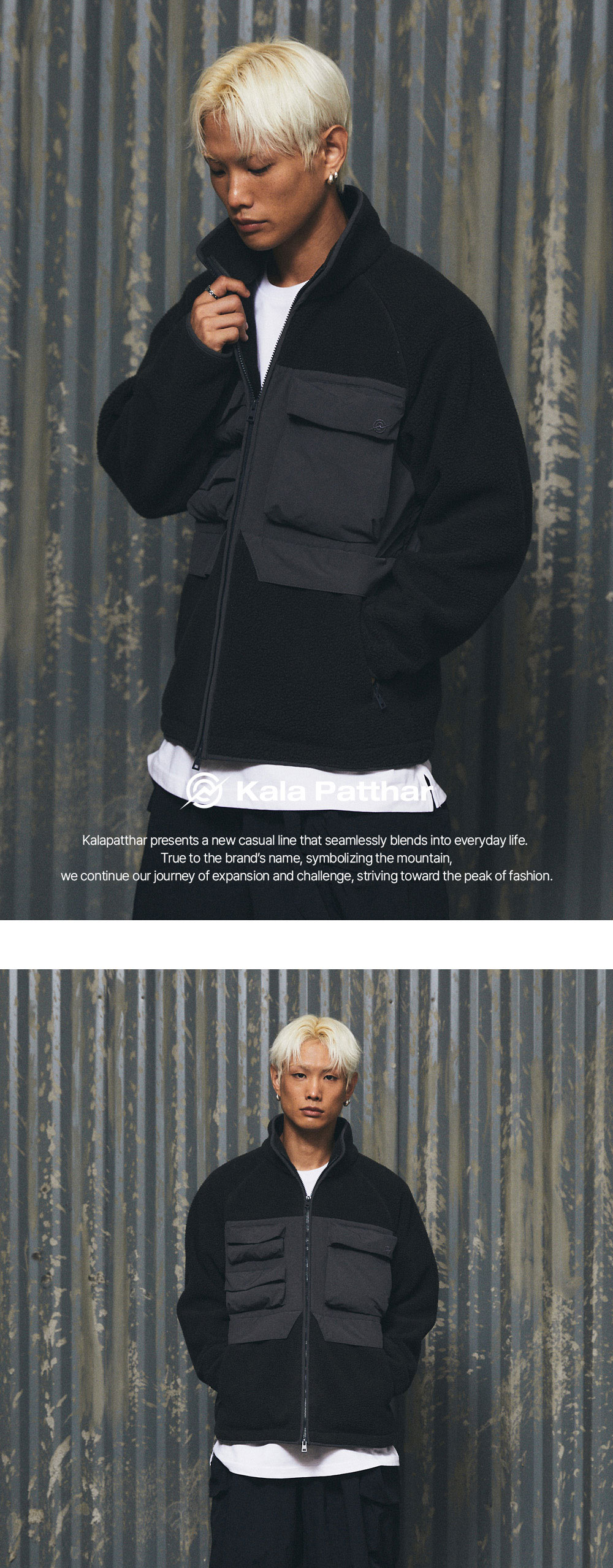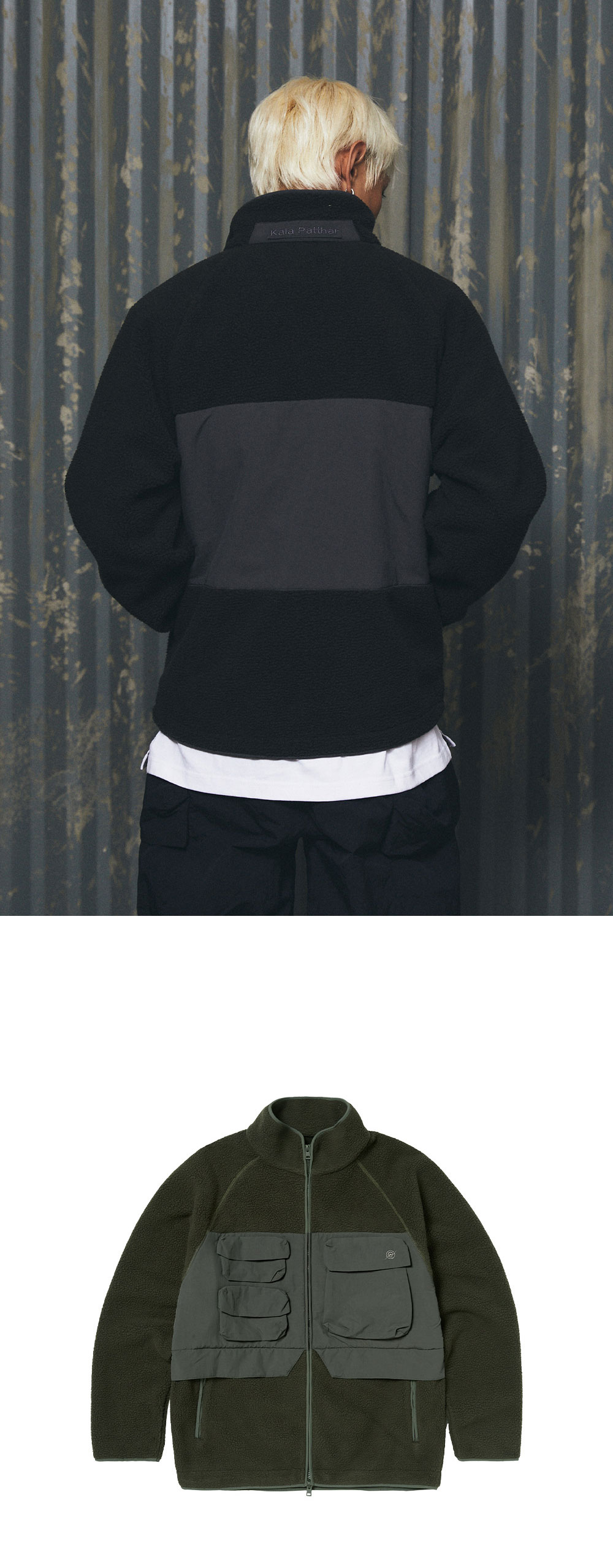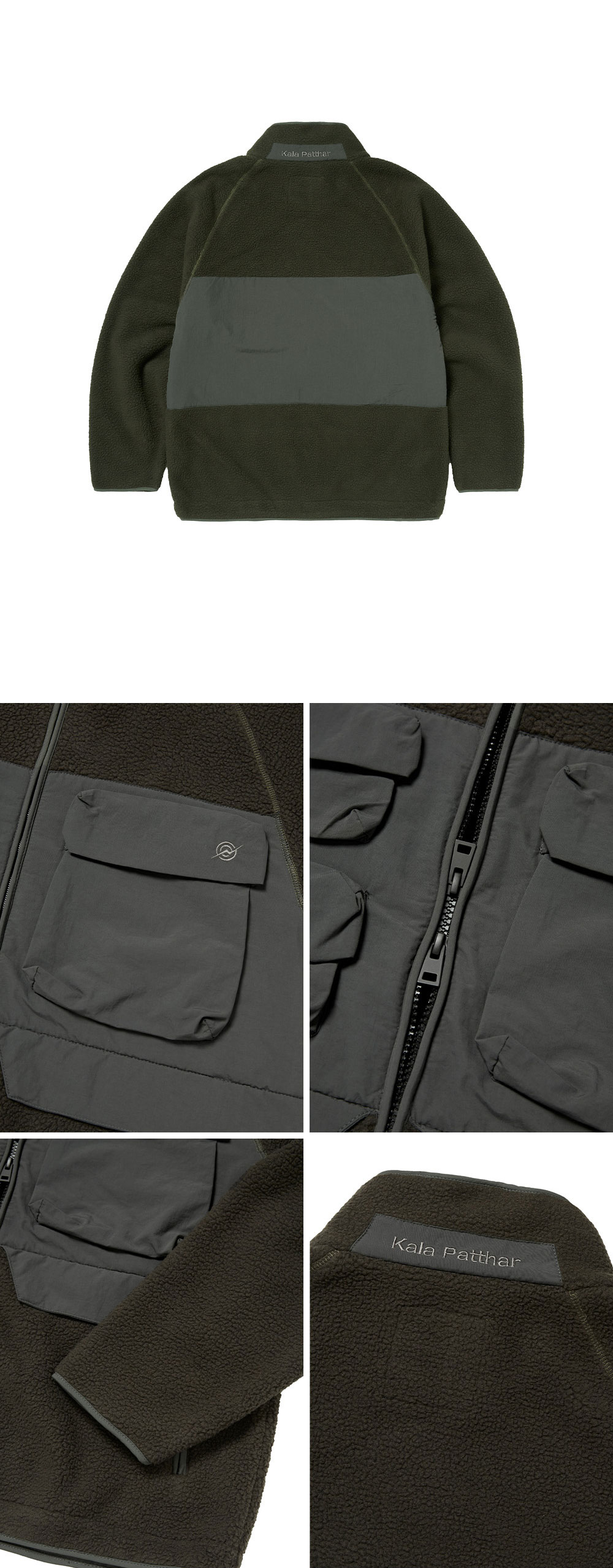 KALA PATTHAR KP Logo Utility Pocket Heavy Fleece Jacket Khaki