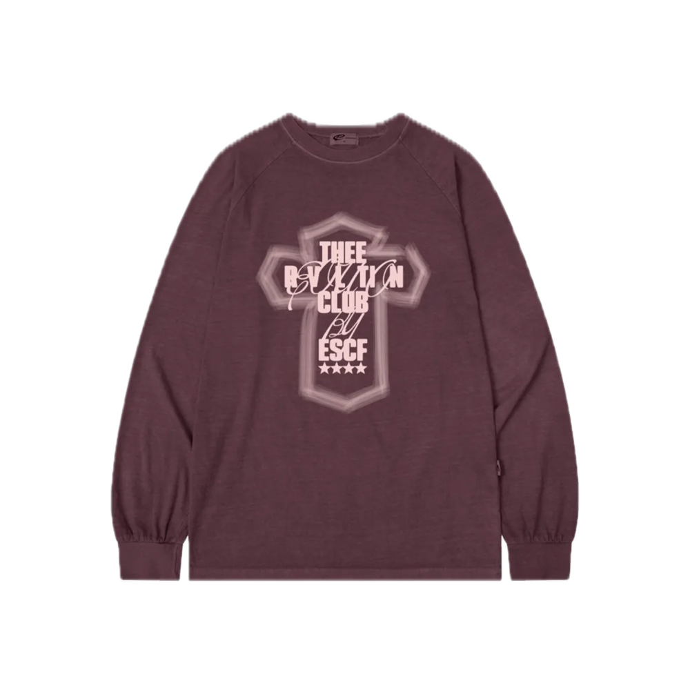 Escapefrom Light Cross Print Oversized Pigment Long Sleeve Burgundy
