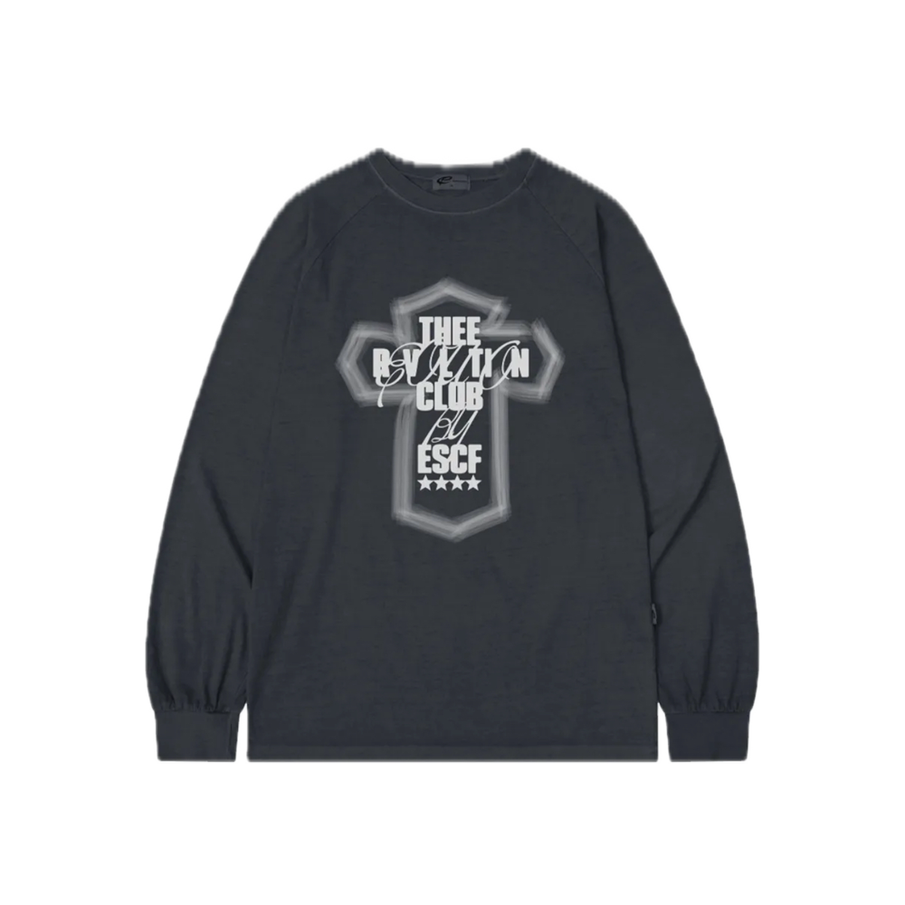Escapefrom Light Cross Print Oversized Pigment Long Sleeve Blue