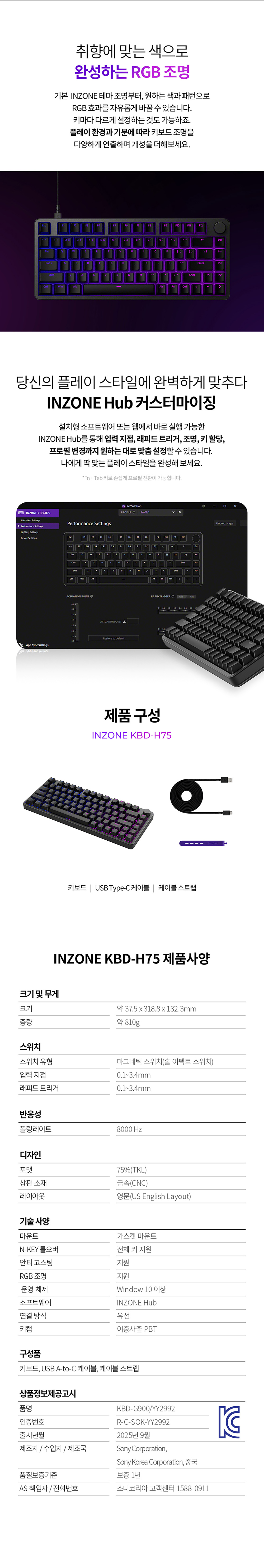 Sony INZONE KBD-H75 Keyboard Black (Sony Korea Ver.)