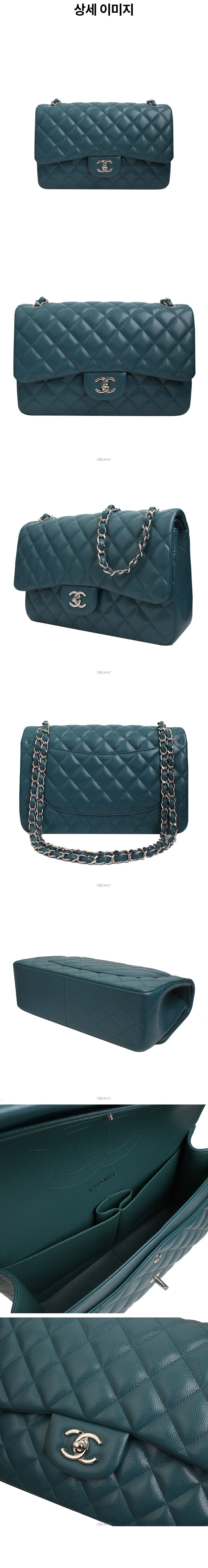 샤넬 클래식 점보 캐비어 말라카이트 그린 은장 숄더백 (26번대)