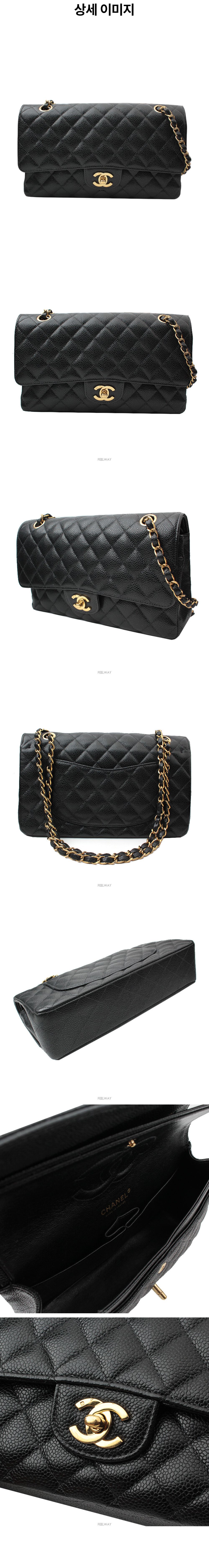 샤넬 블랙 캐비어 클래식 금장 미듐 숄더백 (9번대)