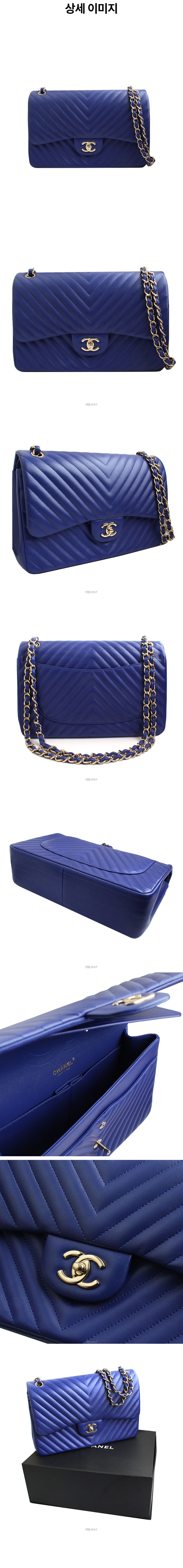 샤넬 로열 블루 램스킨 쉐브론 더블 플랩 숄더백 (24번대)
