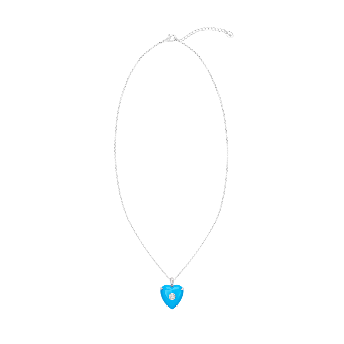 · 상품명 : Heart Turquoise Point Necklace (L) · 소재 : 925실버, 터키석 · 사이즈 : 팬던트 16.5*18mm, 체인 420+40mm, 터키석 16.5*18mm [Material Note · Turquoise] 이 목걸이에 사용된 터키석은 무늬와 결점이 없는 면만을 선별해 제작되었습니다. 자연 터키석은 대부분 다양한 컬러와 터키석 특유의 결이 함께 형성되며, 균일한 색을 가진 부분은 원석 전체에서 극히 제한적입니다. 이 면만을 사용하기 위해 하나의 원석 중 일부만 채취되며, 그 과정에서 상당한 로스가 발생합니다. 표면이 지나치게 깔끔해 보일 수 있으나, 이는 인공 소재가 아닌 자연석 중에서도 가장 균질한 부분만을 사용했기 때문입니다. 무늬보다 색의 밀도와 완성도를 기준으로 선별한 희소한 터키석입니다.