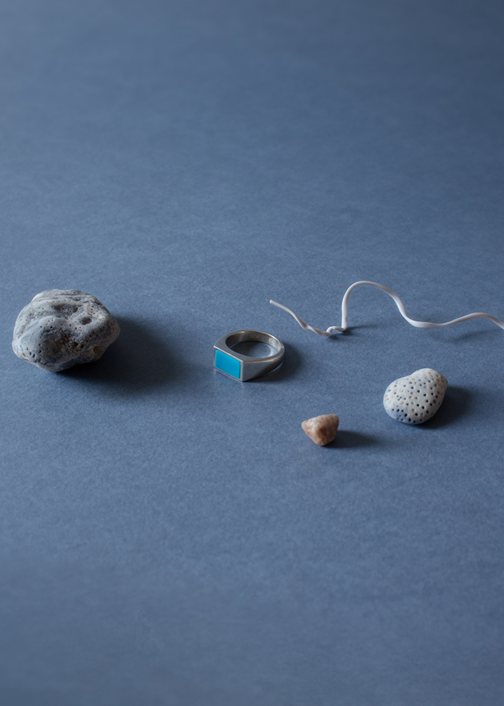 · 상품명 : Flat Pinky Ring (turquoise) · 소재 : 925실버, 터키석 · 사이즈 : 밴드 폭 4mm, 터키석 5.5*9mm