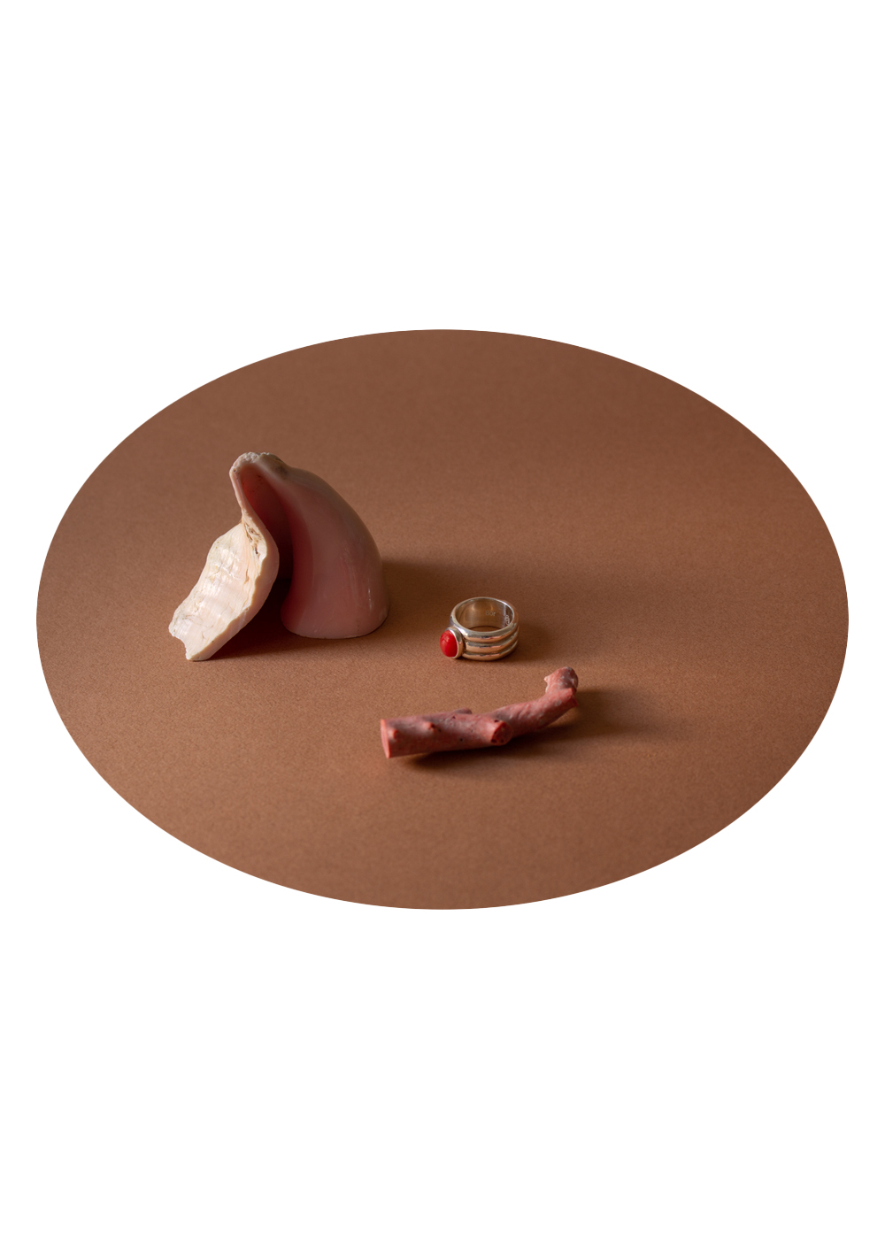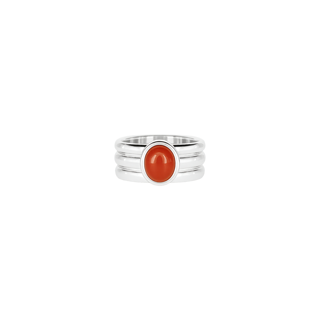 · 상품명 : Stacked Cabochon Ring (coral) · 소재 : 925실버, 산호 · 사이즈 : 밴드 폭 10mm, 산호 6*7.5mm