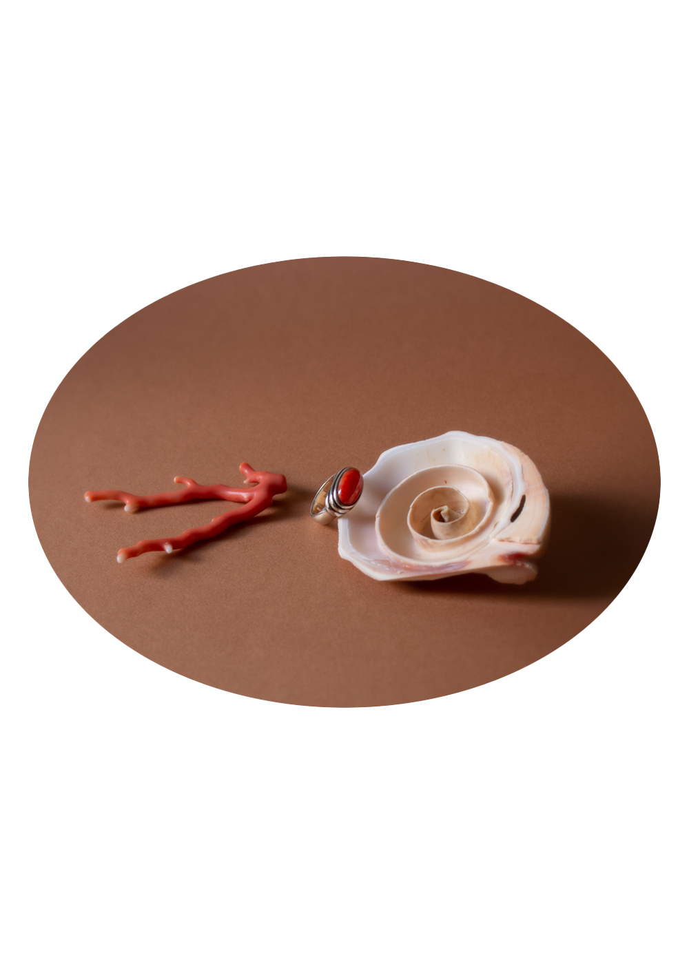· 상품명 : Echo Ring (coral) · 소재 : 925실버, 산호 · 사이즈 : 밴드 폭 6mm, 산호 8.5*14.5mm