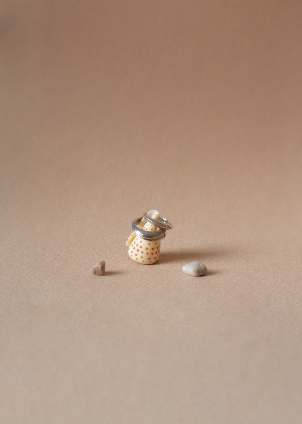 [Care] 실버 & 도금 제품은 땀, 물, 습기, 공기, 기타 오염물질과 닿을 경우 은 특유의 산화로 인해 변색이 발생할 수 있습니다. 이는 표면에서 일어나는 자연스러운 현상으로, 실버 전용 세척제나 클리너로 닦아 관리해 주시고, 보관 시에는 함께 드리는 파우치나 폴리백에 넣어 공기를 차단하고, 실버 폴리싱 천으로 닦아 관리해 주세요.